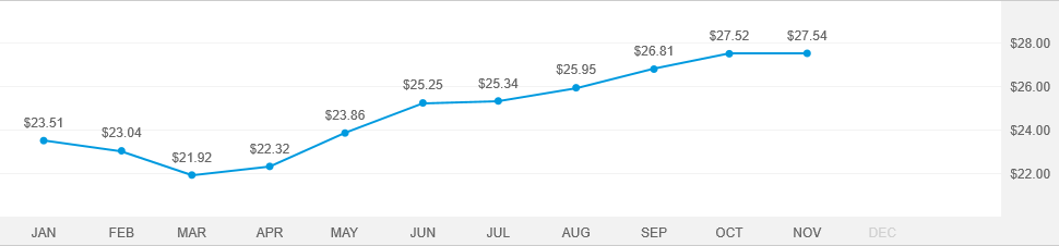 | 12/27/24 | 12/27/24 | 12/30/24 | $0.2126 | $0.00 | $0.8184 | $0.00 | $22.87 |