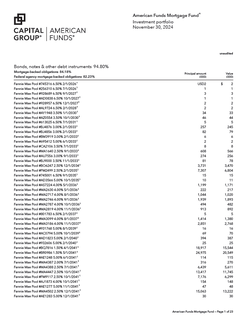 Quarterly Investment Portfolio - American Funds Mortgage Fund
