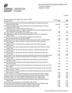 Quarterly Investment Portfolio - American Funds Tax-Exempt Fund of New York
