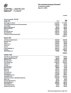 Quarterly Investment Portfolio - The Investment Company of America