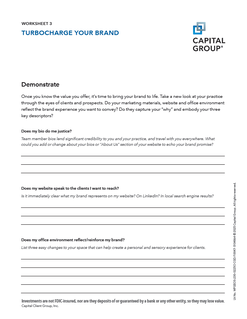 Practice Management - Turbocharge Your Brand Worksheet 3 - Demonstrate