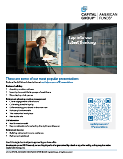 Tap into our latest thinking about topics that can help your practice grow with presentations from Capital Group. Details
