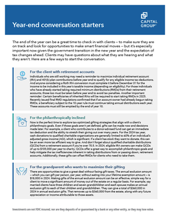 Looking for ways to check in with clients at year end? Here’s how to start conversations about potential tax changes and help clients prepare for what’s ahead. Details