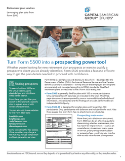This brochure is designed to help financial professionals use Form 5500 to help make their retirement plan prospecting efforts mor... Details