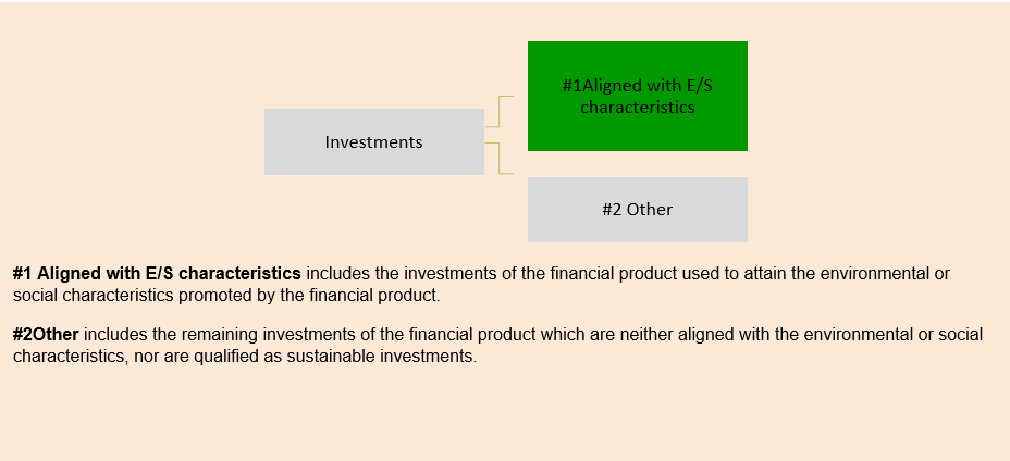 The planned asset allocation is monitored continuously and evaluated on a yearly basis. At least 70% of the Fund's investments are aligned with E/S characteristics. A maximum of 30% of the Fund’s investments including investments non-aligned with the E/S characteristics promoted, securitized debt, derivatives and/or cash and cash equivalents are in category “#2 Other”. The Fund does not commit to make any sustainable investments.